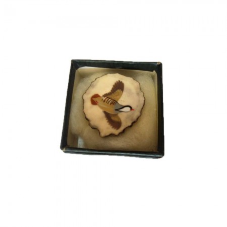 Καρφίτσα από κέρατο ελαφιού μεγάλη με κυνηγετική παράσταση πέρδικας