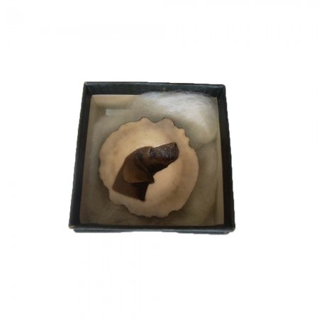 Καρφίτσα από κέρατο ελαφιού μεγάλη με κυνηγετική παράσταση σκύλου κούρτσχαρ